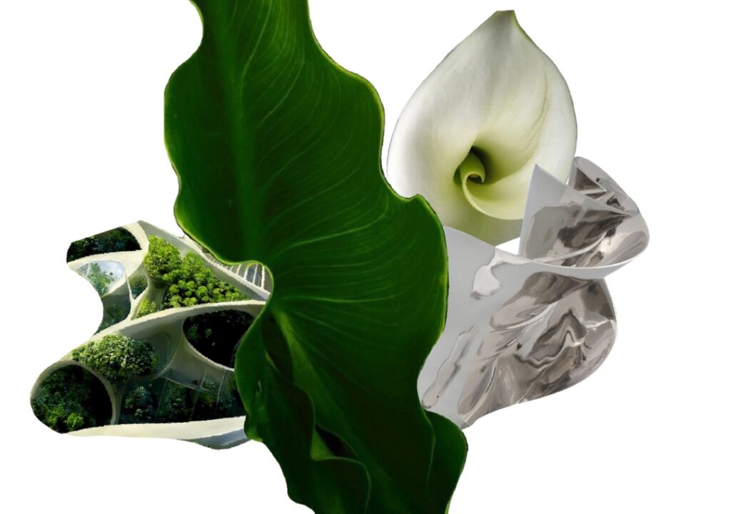 The shapes and silhouettes are extracted from the organic, fluid and symmetrical elements that characterize nature.Â